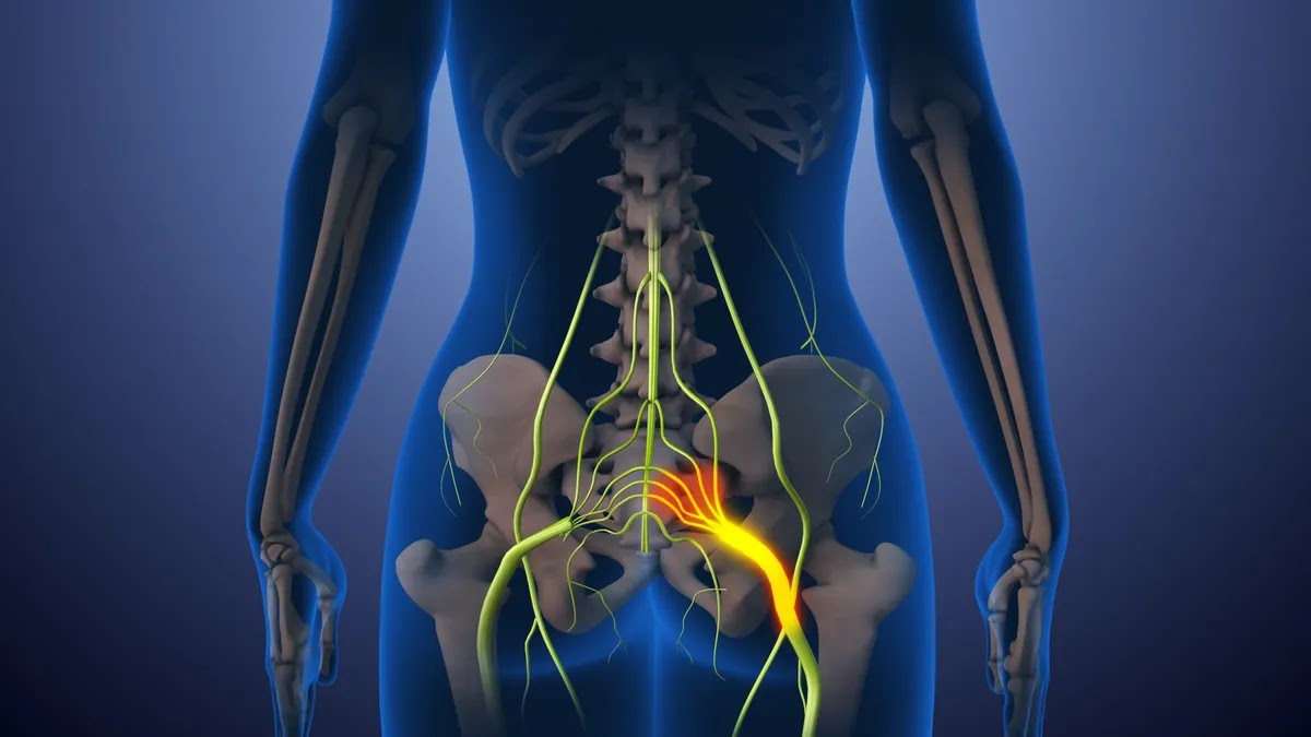Седалищният нерв, показан в ярко жълто на илюстрацията по-горе. (Изображение: Cinefootage Visuals чрез Getty Images)